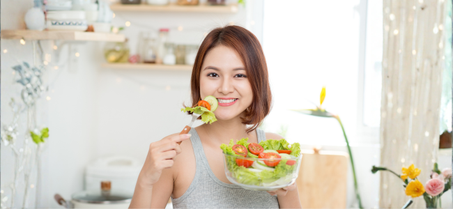 - Perbanyak konsumsi sayuran, buah-buahan, dan sumber protein tanpa lemak.