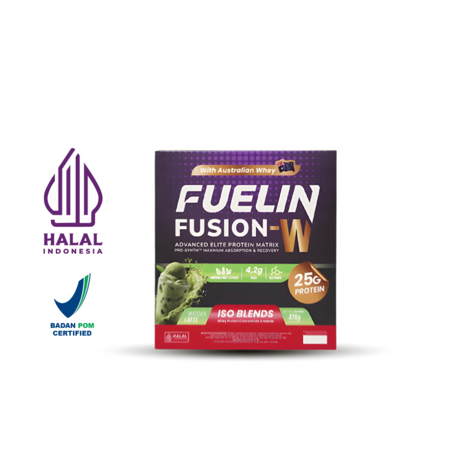 Fusion-W, Susu protein Varian Matcha pertama di Indonesia dan merupakan susu protein pertama di Indonesia yang mengandung PRO-SYNTH MAXIMUM ABSORPTION & RECOVERY yang diformulasikan oleh scientist dan para ahli di bidang olahraga serta sudah teruji secara klinis di laboratorium, dengan mengandung :