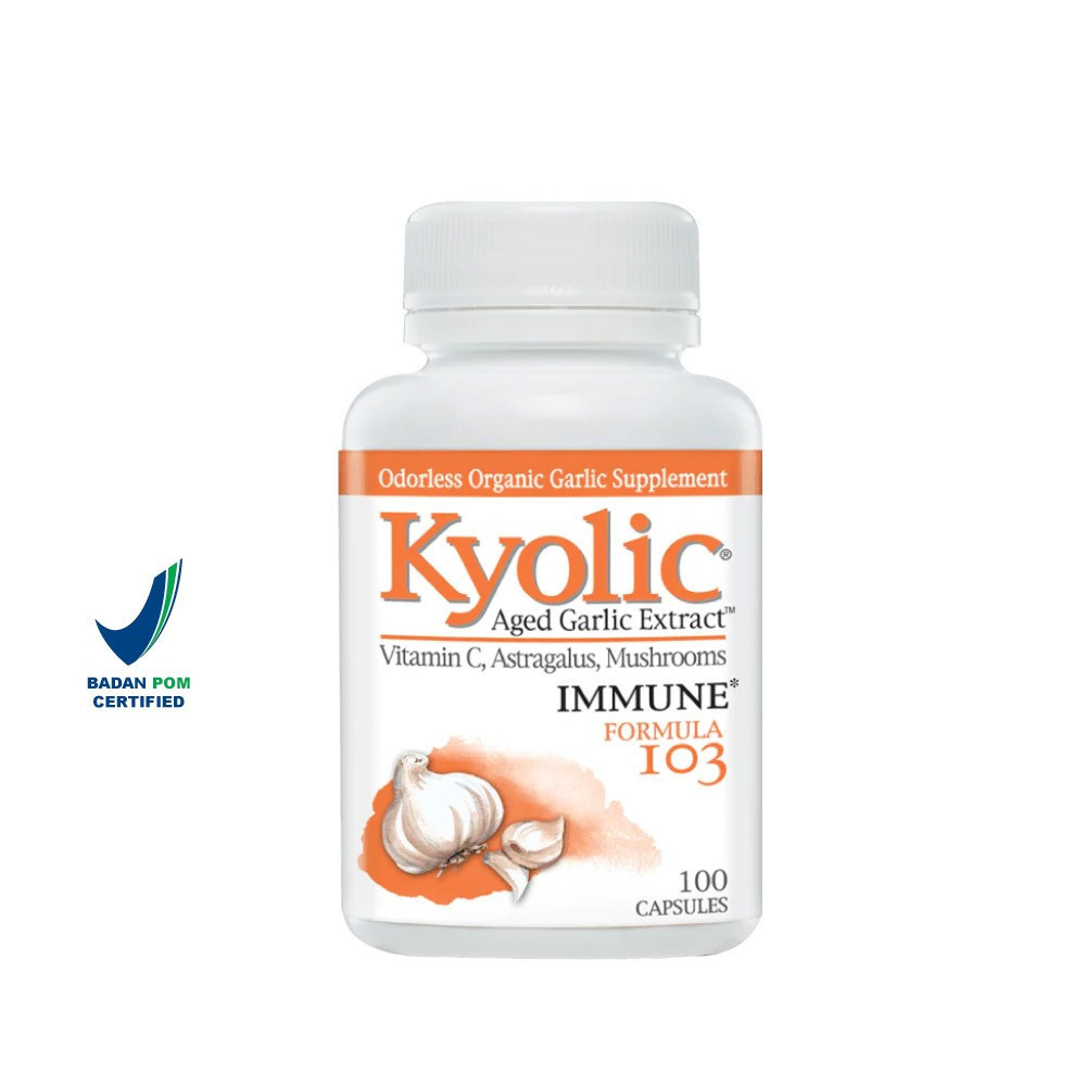 Kyolic Formula 103 - 41 Garlic & Vitamin C (Immune) adalah suplemen berkualitas tinggi dengan kandungan vitamin C, kompleks jamur premium, serta berbagai herbal alami, seperti astragalus, oregano, dan ekstrak daun zaitun. Semua bahan ini dipilih secara khusus untuk menghasilkan kandungan berkualitas dan mendukung fungsi kekebalan tubuh secara optimal.