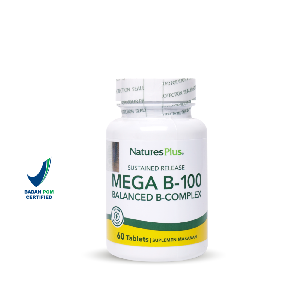 Natures Plus Mega B-100 S/R adalah suplemen vitamin B kompleks dosis tinggi yang dirancang untuk mendukung energi, fungsi otak, dan metabolisme sel.