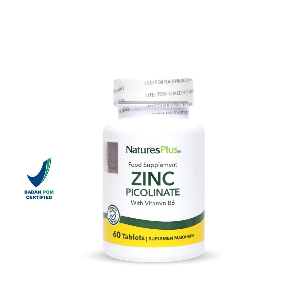 Natures Plus Zinc Picolinate adalah suplemen mineral yang membantu memenuhi kebutuhan zinc harian tubuh. Zinc picolinate merupakan jenis mineral zinc yang punya tingkat penyerapan lebih optimal untuk digunakan secara efektif oleh tubuh.