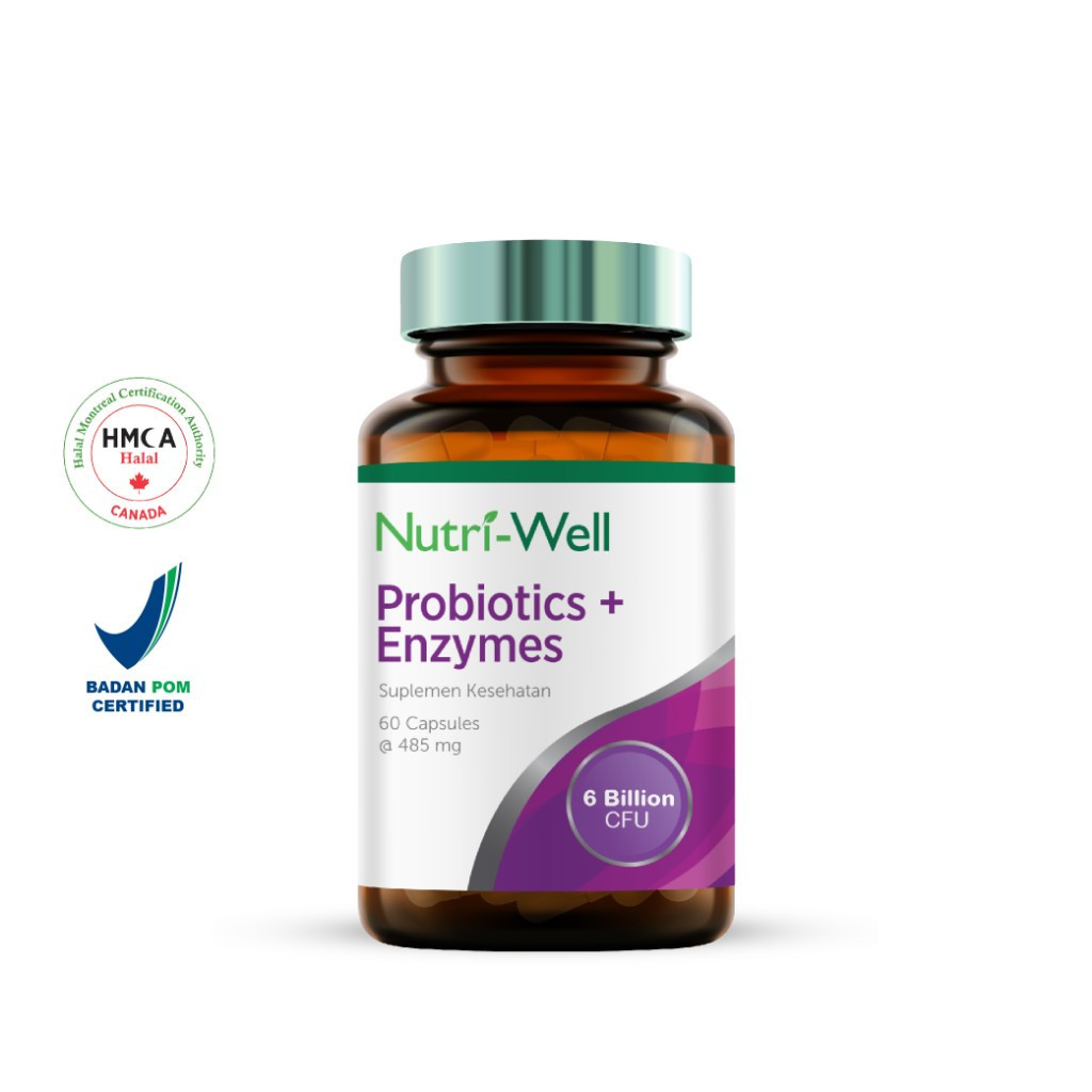 Nutriwell Probiotics + Enzymes adalah suplemen kesehatan mengandung 6 miliar sel hidup dari tiga strain probiotik, yakni Lactobacillus Acidophilus La-14, Bifidobacterium Lactis Bl-04, dan Bifidobacterium Longum Bl-05. Suplemen probiotik ini juga dikombinasikan dengan enzim Lipase dan Protease yang dapat membantu memelihara kesehatan saluran pencernaan.