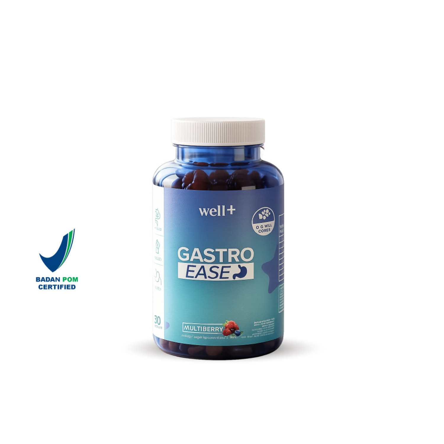 Well+ GASTRO EASE adalah suplemen kesehatan pencernaan dan lambung dalam bentuk Gummy rasa Multiberry yang enak dan praktis.